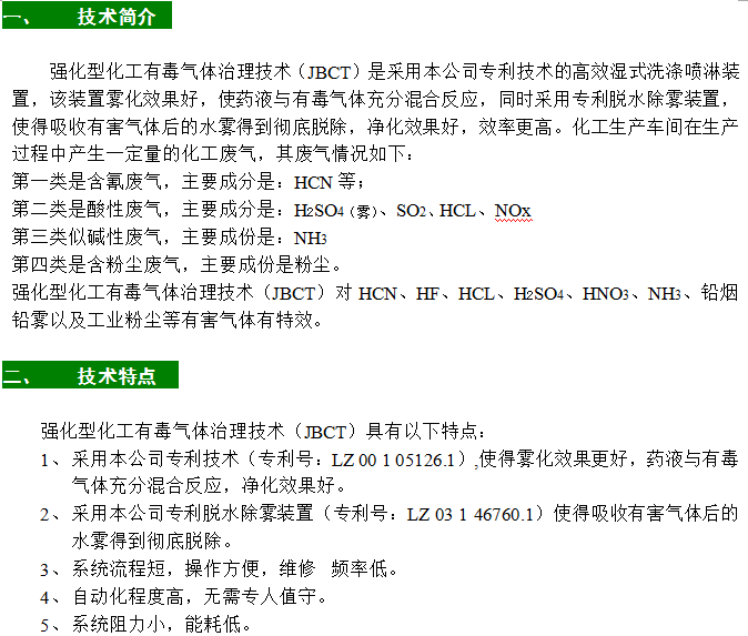 強化型化工有毒氣體治理技術(JBCT)